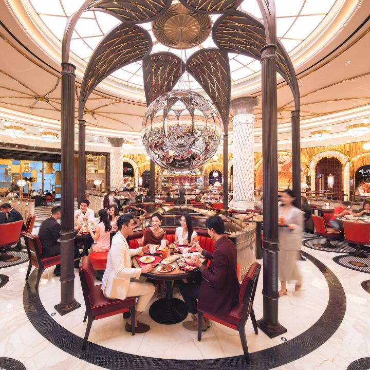 Wynn Palace Macau, a design-led luxury casino resort, redeveloped its Gourmet Pavilion—a large-scale dining destination combining a central food hall alongside six intimate, sit-down restaurants.